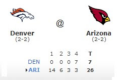 O time foi paciente, alternou passes e corridas, a bola foi distribuída entre os WR's e os TE's, assim o Cardinals foi avançado até a red zone adversária para finalmente a 7 jardas da end zone numa corrida de Bennie Wells o time marcar o seu primeiro TD da temporada.